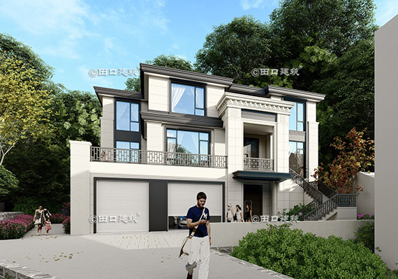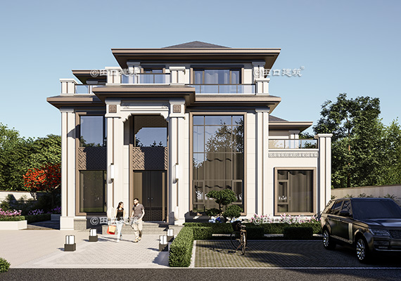 占地面積 142.4㎡ 土建造價 60.0萬 帶底商三層美式別墅
